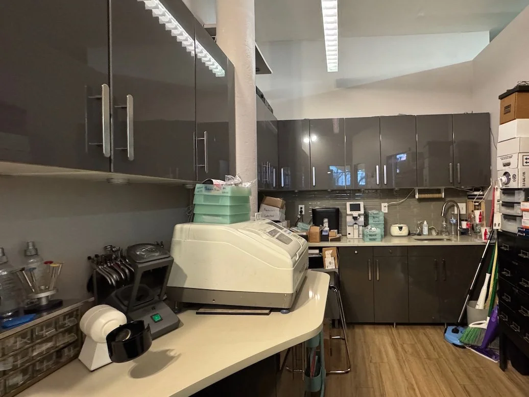 Turn-key for , this space is move-in ready for retail, offering tall ceilings, ample natural light from generous storefront windows, two built office/storage rooms, an area for employee belongings with kitchenette, and a restroom. Rear door access for deliveries.
